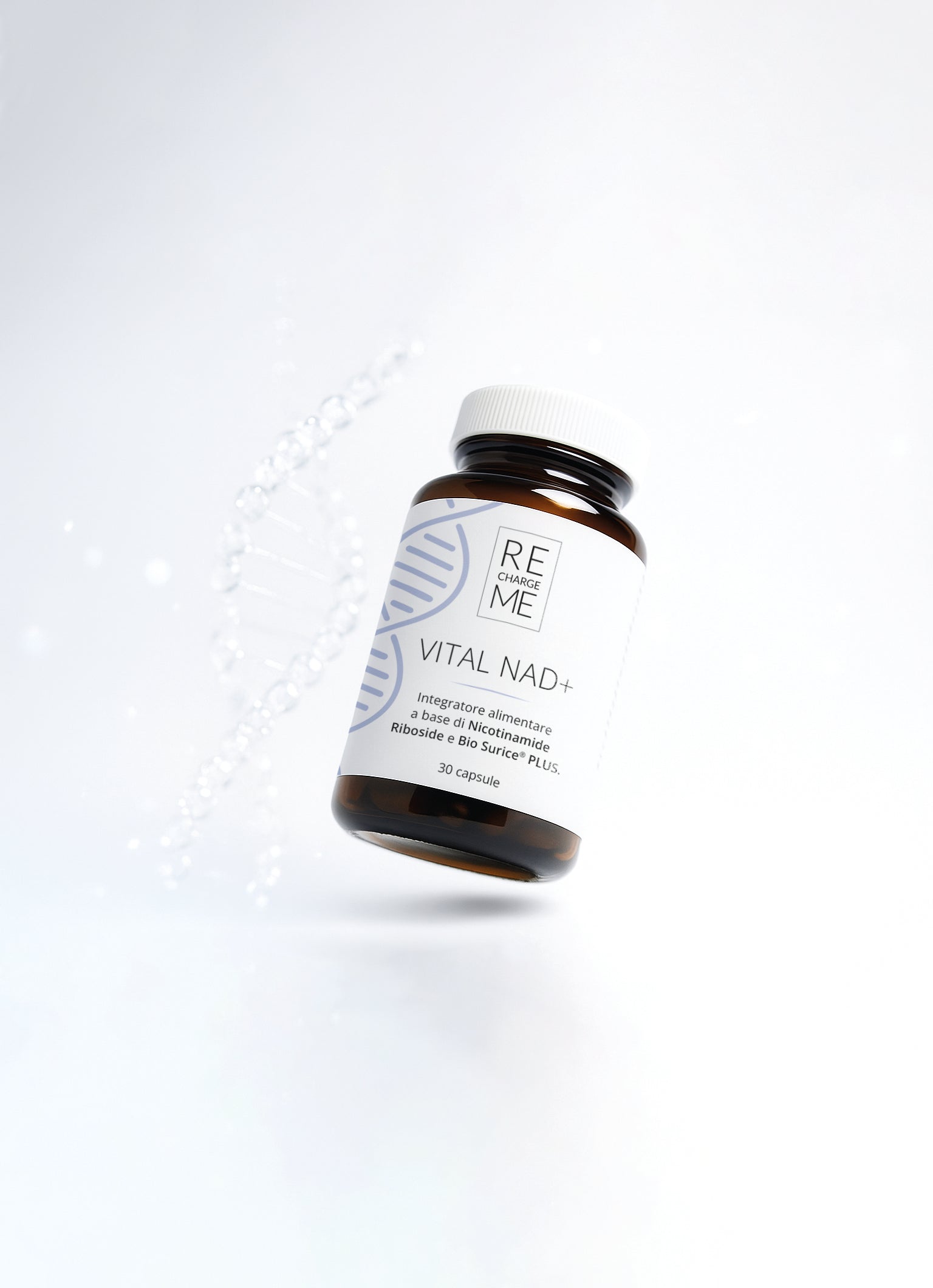 Recharge Me cosmeceutical products contain NADRev, an active ingredient in very high concentration, obtained through a patented industrial synthesis process.